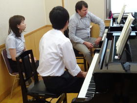 第3回目のロシアンメソッド専攻レッスンでは、デニス・チェファーノフ先生がレッスンしてくださいました。 先生には26日に行われた音楽科中学生体験入学の際に演奏も披露してくださり、その後、集まってくれた中学生の皆さんにアドヴァイスをしてくださいました。