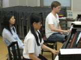 先生はいつも「何を伝えたいのか」と問われます。自分が曲のイメージをどう広げていくか、きちんと考えなければならないと指導されていました。また、音の質をよく吟味すること、フレーズの中心になる音を理解することなどポイントをわかりやすく説明してくださいました。また、ff(フォルテシモ)は、ただ強い音を出すのではなく、響きで表現できるように練習を重ねることも必要だということを教えてくださいました。不用意に出してしまう音などは、すぐ指摘をされるため、レッスン生は集中力の持続を求められるレッスンとなりました。