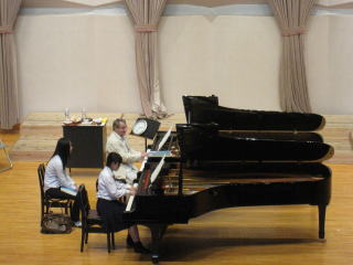 今年度2回目となるアガジャーノフ先生をお迎えしました。今回は、専攻生レッスンだけでなく、ミニコンサート、本校音楽科のピアノ講師の先生方との勉強会など、盛りだくさんの内容を行っていただきました。専攻生レッスンでは次のような点を挙げながらご指導くださいました。